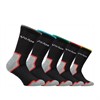 Mjuka och ventilerande ullstrumpor (merinoull) halvfrotté, anatomiskt utformade och med elastan och polyester. Finns i storlek 36-47. 6par/bunt. Svart/röd. Certifierad med Oeko-tex.