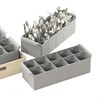 Diskkorg med 10-fack för bestick. Rymmer ca 150-200st bestick. 2st diskkorgar får plats i en diskback. Mått LxBxH 49x18x14cm. Grå.