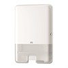 Rymlig dispenser i vit plast med utmatning av ett ark i taget. Passar utrymmen med hög förbrukning. H 444mm B 305mm D 101mm.