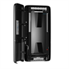 Rymlig dispenser PeakServe® Continuous® i svart plast för välbesökta toalettutrymmen där personalen behöver maximera städtiden. Hög kapacitet på hela 2100 handdukar. Komprimerade handduksbuntar för kontinuerlig påfyllning. H 731mm B 370mm D 101mm.