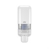 Manuell dispenser med synlig refill för Tork tvål och handsprit S4. Mått (HxBxD) 30,3x10,6x12,2cm. Vit plast.
