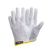 Textilhandske i bomull för monteringsarbeten. Med resår och ftalatfria PVC-prickar (vinyl). Cat I. Vit. 12par/bunt.