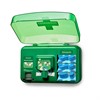 Dispenser Wound Care är särskilt utformad för restauranger och livsmedelsindustrin. Innehåller det mesta som behövs för att ta hand om mindre sårskador; en större mängd detekterbara plåster i olika storlekar, sårtvättare samt Soft foam bandage blue som är ett självhäftande plåster som sitter kvar även i vatten. Ett bra komplement till Första Hjälpen-station och kan placeras där du löper stor risk för mindre sår. Transparent lock skyddar mot damm. Dispensern innehåller Salvequick sårtvättare 40st (3227), Cederroth Soft foam bandage blue 4,5m (51011010), 2 x 35st detekterbara plåster (51020127), 30 st detekterbara plåster fingertip (51030126) samt en refillnyckel.