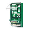 Första Hjälpen-Station för hantering av flera typer av skador och kan anpassas efter olika vårdbehov, nu i ännu mer uppdaterad variant. Enkel att fylla på och att hålla stationen komplett. Första Hjälpen stationen innehåller 2 Cederroth 4-in-1 Blodstoppare (1910), 3 Cederroth 4-in-1 mini Blodstoppare (1911), 1 (x 2) st Cederroth Burn Gel Dressing (901900), 1 Cederroth Eye & Wound Cleansing spray 150 ml (726000), 1 Salvequick Plåsterautomat inkl 45 Plastplåster (6036) och 40 Textilplåster (6444), 1 Soft foam dispenser inkl 6cmx4,5m Soft foam bandage beige (51011019), 1 (x 20) st Salvequick Sårtvättare (323700), 1 Cederroth Skyddspaket (2596), 1 Första Hjälpen-instruktion, 1 Refillnyckel, 1 Borrmall. Tavlans mått (BxHxD) 29x56 x12cm. Tillverkad av återvunnen plast.