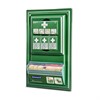 Första Hjälpen-tavla Mini innehållande plåster och blodstoppare. Passar för mindre utrymme eller som komplement till annan Första Hjälpen-utrustning. Första Hjälpen-tavla Mini innehåller 1 st Cederroth 4-in-1 Blodstoppare (1910), 3 st Cederroth 4-in-1 mini Blodstoppare (1911), 1 st plåsterautomat med 45 Plastplåster (6036) och 40 Textilplåster (6444).