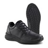 Lätt och vattenavvisande yrkessko med snörning, slitsula i gummi och ovandel i fullnarvsläder, lämplig för användning både inom- och utomhus i torra eller hala miljöer. Med Ergothan stötdämpningsystem och antistatiska egenskaper. Används inom servicearbeten, lokalvård och restaurangarbeten. ESD-godkända. Skyddsklass O2. Svart. Finns i storlek 35-48.