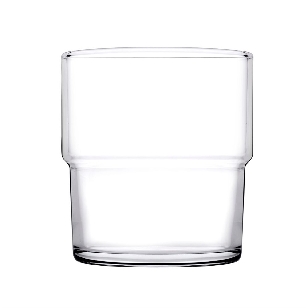 Dricksglas Hill från Pasabache i härdat glas, stabelbart. Dia 8cm, höjd 8,7cm. 12st/fp=minsta beställning.