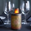 Ljuslykta i borstad metall med mönster och avtagbart lock. Dia 8,5cm. Höjd 12cm. Svart. 4st/fp.