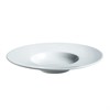 Elegant rund tallrik i fältspatporslin med brett bräm dia 27cm, lämplig för förrätter och desserter. Tål mikrovågsugn, diskmaskin och frys. Vit. 6st/fp = minsta beställning.