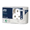 Mjukt toalettpapper vitt Premium 2-lags med dekorprägling i vitt. 50,4m/rle, bredd 9,8cm. 42rle/fp. Miljömärkt med Svanen och FSC. Passar till Tork dispensers T4.