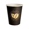 Kaffebägare papper belagd med PE, lämplig för alla typer av drycker. Rymmer 24cl (8oz), mått dia 8cm, höjd 9,2cm. Svart med tryck. 20x50st/fp.