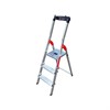 Stabil hushållsstege i aluminium för proffs och hemmafixare. Med ståplattform och rymlig verktygshylla i plast. Räfflade fotsteg för minimerad halkrisk. Ihopfällbar och lätt att bära med sig. Plattformen fungerar som låsning i utfällt läge och ger god stabilitet. Låg vikt. Glidskydd. 3 steg inkl plattform. Total höjd 136cm, mått nedtill 42x70cm. Vikt 3,3kg.