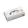Smidig och stark engångshandske i vinyl, avsedd för engångsbruk. Med invändig prägling och PU-belagd för bättre komfort. Lämplig för hantering av fettfria livsmedel och rengöringsuppgifter utan starka kemikalier, vård, målning och laboratorier. Längd 240mm. Puderfri och med minimal allergirisk. CE-godkänd, Cat III samt godkänd enligt EN 455 (medicinskt bruk) och EN 420 (krav för skyddshandskar). Livsmedelsgodkänd. 100st/ifp. 10 infp/hel krt. Transparent. Storlek L.