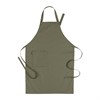 Bröstlappsförkläde från Segers one size, reglerbart nackband med tryckknappar. Fickar med bälg på höger sida, nyckelhälla. Hank för upphängning. Kvalitet 65% polyester 35% bomull. Twill 210g/m². Mått 70x100cm. Olivgrön.