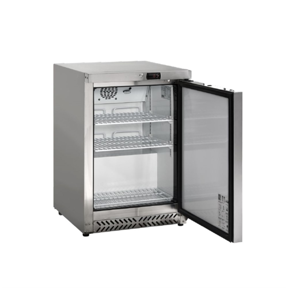 Frysskåp Safir GUF 200X, mått 595x653x885mm. Med två hjul och två justerbara fötter i fronten, så att skåpet lätt kan flyttas och stå stabilt på de flesta ytor. Försedd med högerhängd dörr med lås, vändbar med integrerat handtag. Självstängande dörr som minimerar temperaturhöjning. Automatisk avfrostning. Digital termostat. 2+1 hyllplan (små i botten). Max justerbar höjd 880mm. Nettovikt 47kg.