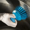 Handskurborste rund med robust borst och grepp. För effektiv rengöring av hoar, transportband, livsmedelsbehållare etc. Ergonomisk borste som ger bättre tryck vid användning. Dia 110mm. Blå. FDA godkänt material samt godkänd för livsmedelskontakt. Finns även i vit. För övriga färger (röd, grön, gul) kontakta oss.