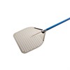 Perforerad, rektangulär pizzaspade i aluminium, bredd platta 32cm, höjd 34cm. Total längd 154cm varav handtag 120cm. Med neutralt anodiserat aluminiumhuvud som har en slät, oxidationsbeständig yta vilket minskar friktion och låter överflödigt mjöl falla bort, vilket förhindrar att det fastnar i pizzans botten och bränns vid under gräddningen. Blått anodiserat aluminiumhandtag tillverkat med oval rörformig struktur för stabilitet och kontroll under rörelse. Förstärkt mellan huvud och handtag med tre stora inline-nitar, vilket säkerställer styrka och komfort genom att eliminera vibrationer eller böjning. Passar perfekt för vedeldade eller elektriska ugnar, roterande ugnar eller tunnelugnar eller kompakta ugnar för barer och snabbmatsrestauranger.