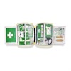 Första Hjälpen-kit medium i slitstarkt gummiliknande material med matt yta. Använd som komplement till väggfast station. Med innehåll paketerat i transparenta plastfickor för tydlig översikt och med självförklarande instruktioner. Innehåller 1st 4-in-1 blodstoppare, 1st 4-in-1 blodstoppare mini, 10st Salvequick plåster, 6st Salvequick sårtvättare, 4st Salvequick Maxi Cover, 1st andningsmask, 2st Safety hand cleanser, 2par handskar, 1st räddningsfilt, 1st elastisk binda, 1st Burn gel dressing, 1st sax, 1 st Första Hjälpen instruktion. Mått 231x190x78mm. Grön/gul.