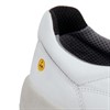 Bekväm, hållbar och vattenavvisande skyddssko, enkel att rengöra. Slående vit design med ovandel i PU-belagt läder som ger fötterna stöd och stabilitet medan den ventilerade innersulan håller dem svala. Oljebeständig yttersula i PU för extremt bra grepp i hala miljöer, aluminiumtåhätta och antistatiska egenskaper. Dubbla stötdämpande zoner i Poron® XRD® för maximalt skydd. ESD-godkänd. Skyddsklass 2. Vit. Finns i storlek 36-47.