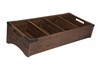 Lutande besticklåda med fyra fack. Mått (BxHxD) 59x22x28cm. Mellanbrun.