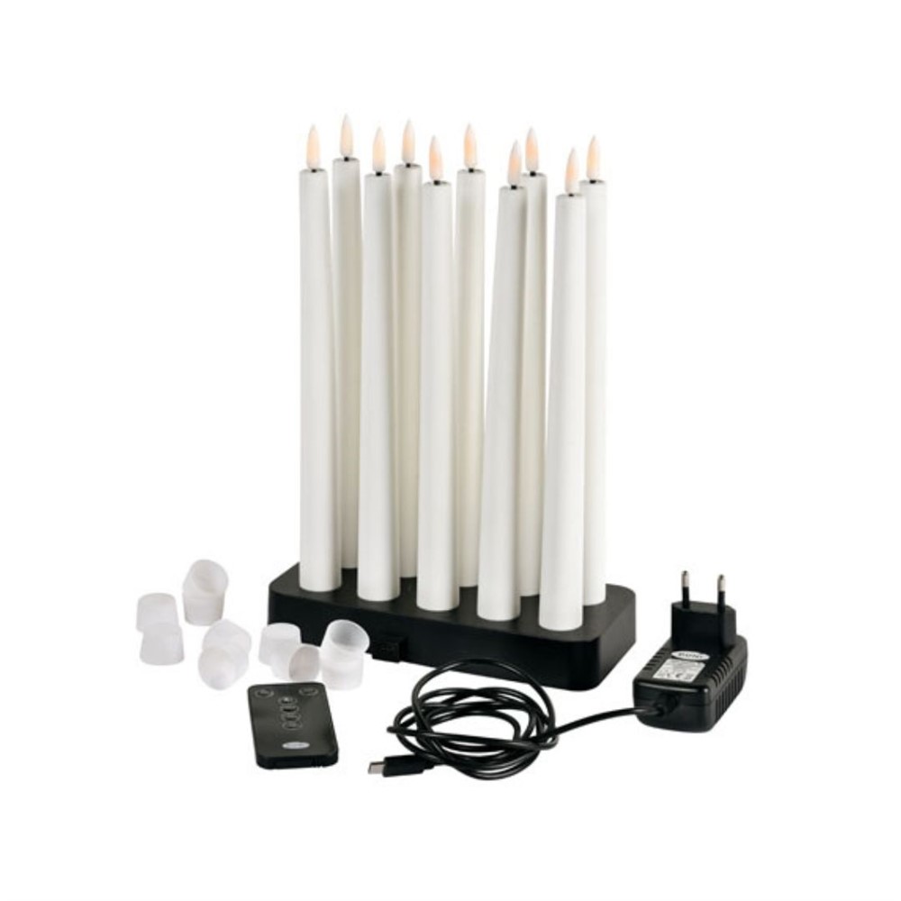 LED-ljus "stearinljus" som aldrig brinner ner, realistiskt utseende och känsla med varmvitt ljus. Dia ljus 23mm, höjd 278mm. Dimmer- och timerfunktion. Lyser upp till 25 timmar och kan laddas upp till 500 gånger. Levereras med laddstation och fjärrkontroll. 10st ljus/fp.