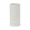 Ljuslykta i metall med mönster. Dia 7,5cm. Höjd 14cm. Vit. 4st/fp.