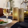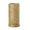 Ljuslykta i metall med mönster. Dia 7,5cm. Höjd 14cm. Guld. 4st/fp.