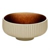Rund skål i stengods med patinaliknande glasyr på insidan och relief på utsida. Dia 21cm höjd 7cm. Rymmer 1,46 liter. Kan användas i ugn och microvågsugn. Går att diska i diskmaskin. 6st/fp = minsta beställning.
