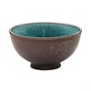 Skål stengods i rustik design. Dia 12cm höjd 6,2cm. Rymmer 0,27 liter. Brun med turkos insida. Kan användas i ugn och microvågsugn. Går att diska i diskmaskin. 6st/fp = minsta beställning.