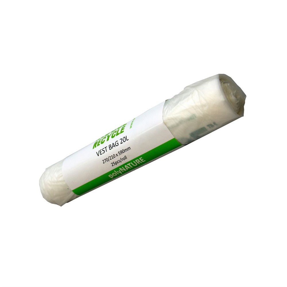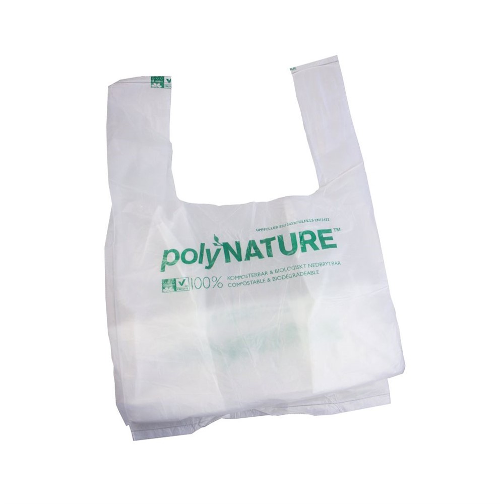Soppåse med knythantag, tillverkat av biologiskt nedbrytbar stärkelse som tillåter kompostering utan påverkan på djur- eller växtriket. 20 liter. Mått 270/210x590mm, tjocklek 0,015mm. 25st/rle, 50rle/fp. Vit. Bör förbrukas inom två år (om den förvarats obruten förpackning). Certifierad kompost enligt EN 13432.