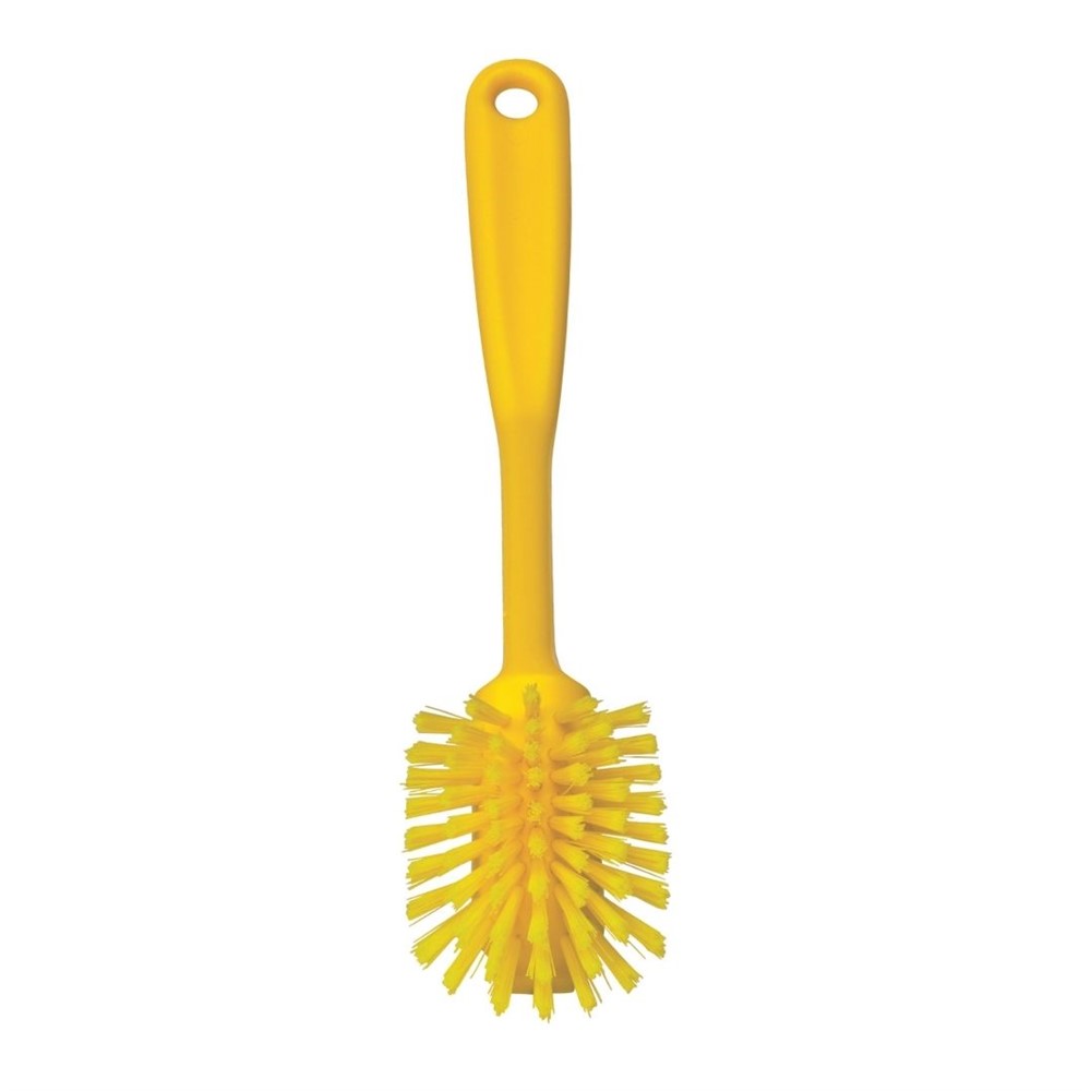 Diskborste medium med skrapkant, även lämplig för detaljrengöring av maskiner och utrustning. Mycket hållbar. Gul. Längd 28cm. FDA godkänt material samt godkänd för livsmedelskontakt. Finns i flertalet färger.