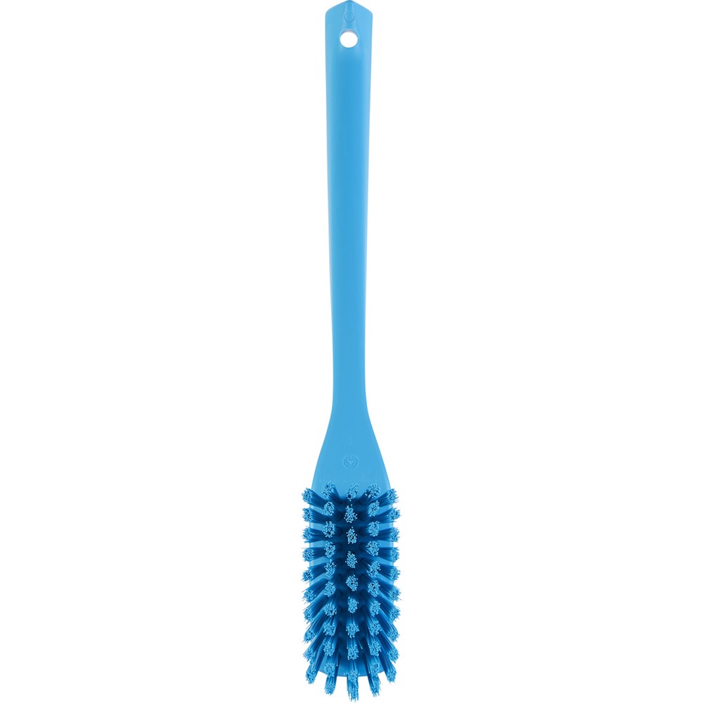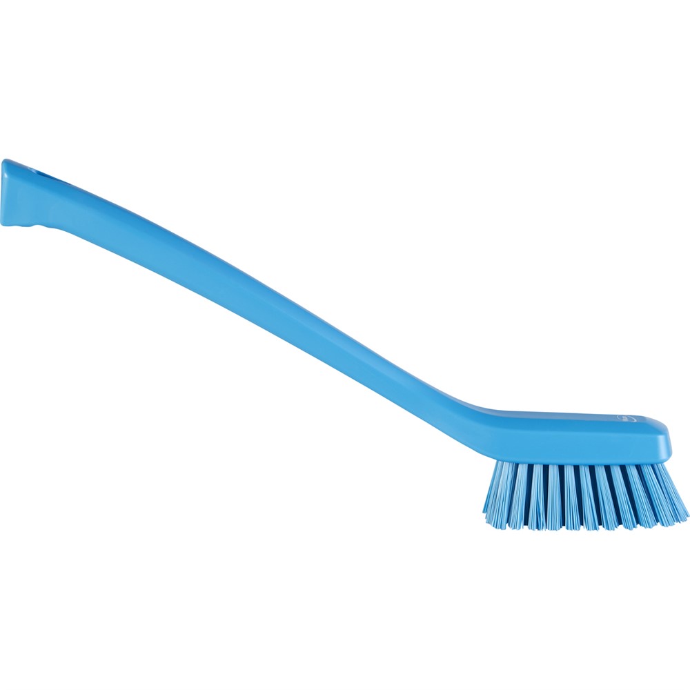 Hård smal handtvättborste med långt skaft 420mm. Rengör enkelt små utrymme. Med vinklade borststårn för att underlätta rengöring av hörn. Bra grepp för extra stabilitet. Blå. Diameter 46mm. Längd 420mm. FDA godkänt material samt godkänd för livsmedelskontakt. Finns även i färgerna vit och grön. För övriga färger (orange) kontakta oss.